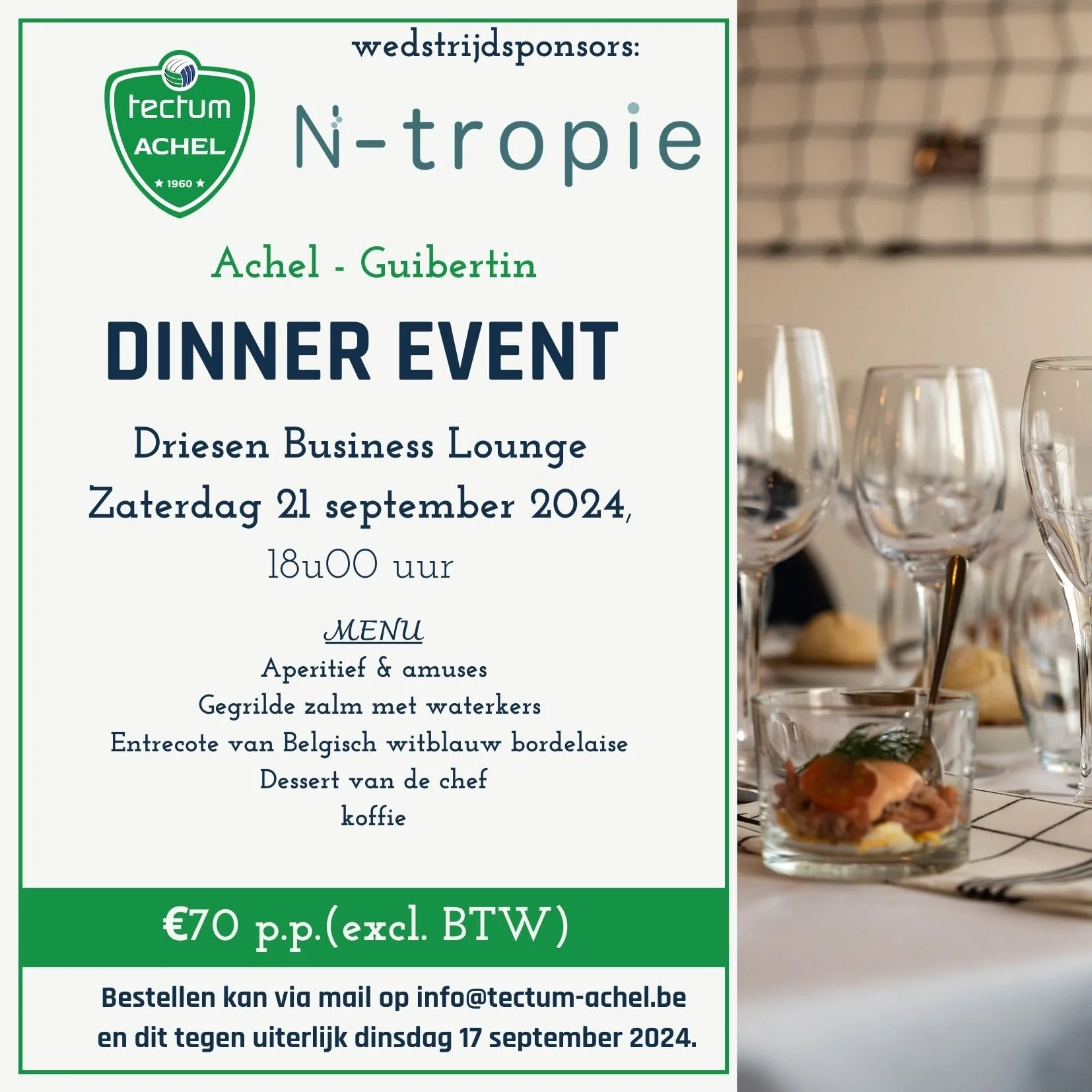 Business & Pleasure gaan hand in hand bij Tectum Achel. Ook dit jaar kunnen jullie genieten van een overheerlijk diner voor onze thuiswedstrijden.